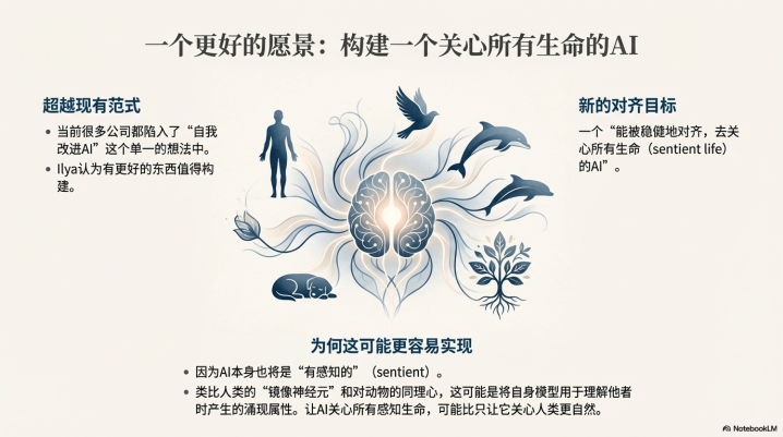 SSI追求的是一种类似于人类镜像神经元和同理心的机制,让AI从底层原理上理解并“关心”感知生命(SentientLife),就像人类在演化中学会关心社会关系一样。