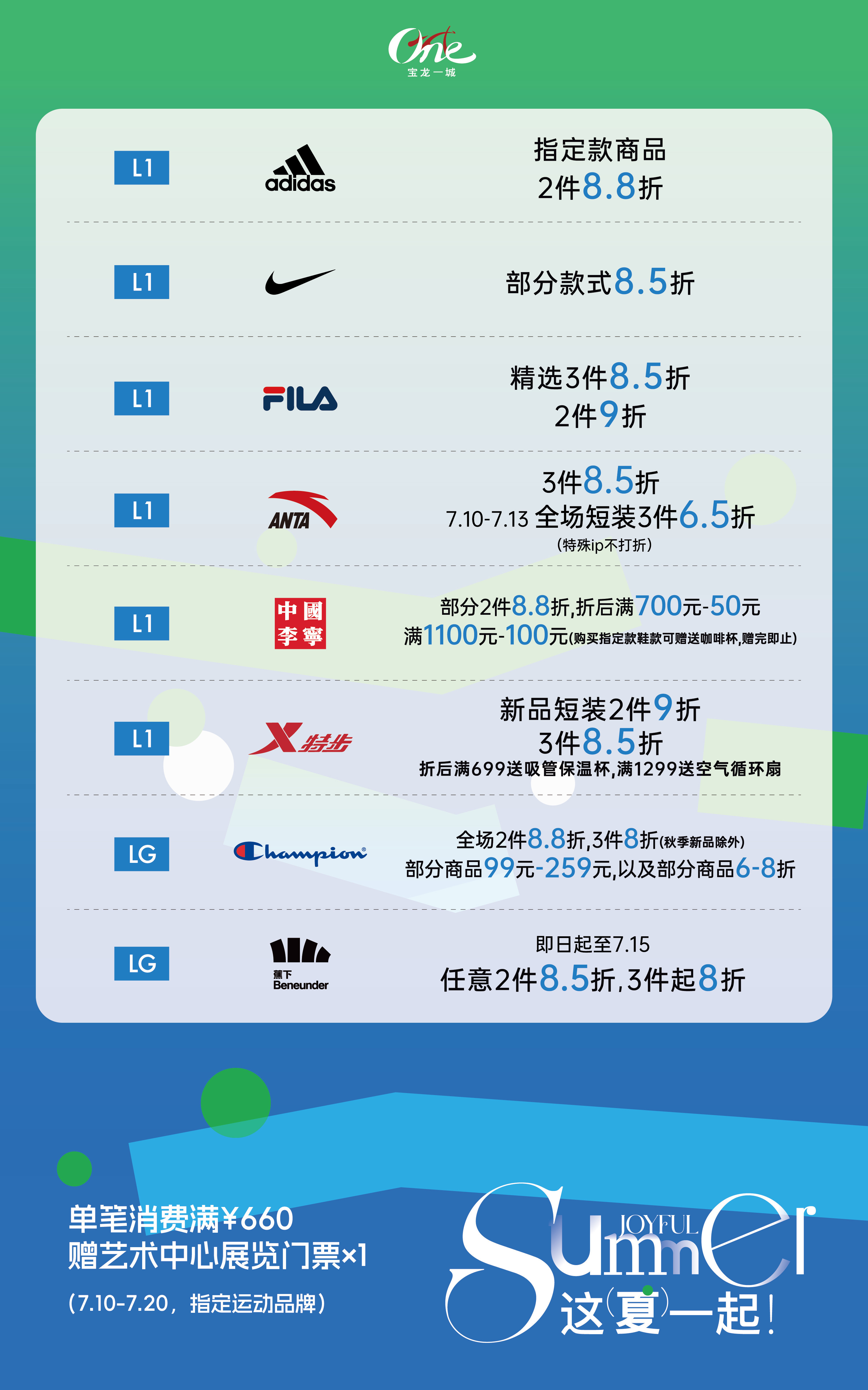 - 推出“运动消费+艺术体验”联动机制:指定运动品类单笔消费满660元即赠宝龙艺术中心展览门票1张