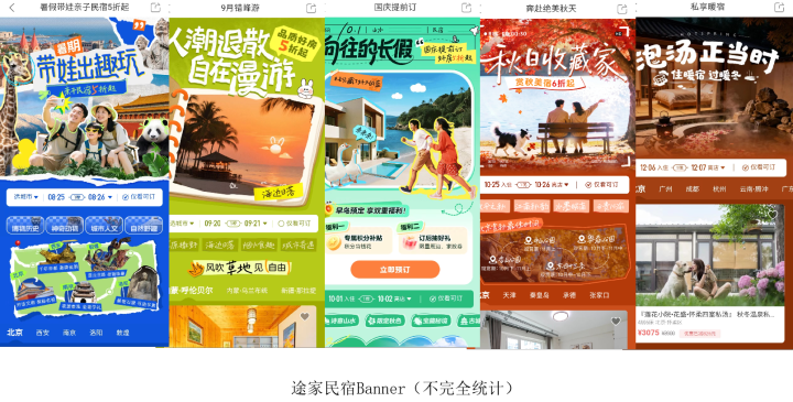 粗略估计,2025年途家民宿上线10场活动,大多都在围绕商旅用户度假场景展开,比如多居室以及中长租。如果用一个字形容途家,那就是“独”。比起木鸟,途家背靠携程,拥有较为可观的商旅用户。在2016年合并携程去哪儿旗下公寓房源后,途家优势的酒店式公寓房源与商旅用户形成供需适配,途家的自营业务更加重了这一平台基因。