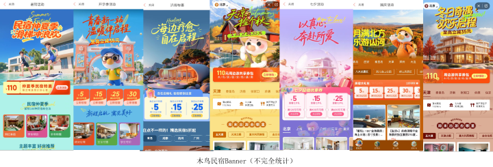 据不完全统计,木鸟民宿2025年上新14个专题活动。从数量上看,木鸟民宿在三大民宿预订平台中处于第一。
